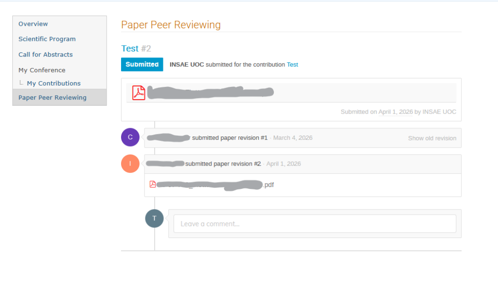 Once a paper is uploaded, a timeline page will be available where results like requests for revisions and comments can be seen as well as having the possibility of leaving comments for reviewers.